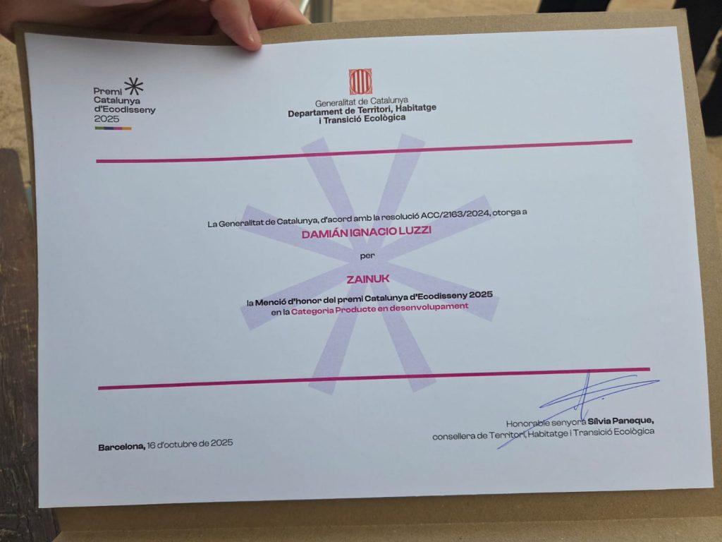 Esta combinación de ecodiseño y evidencia digital permite demostrar, de forma transparente y auditable, la circularidad real del producto. Esta innovación tecnológica fue uno de los motivos por los cuales el jurado otorgó la mención de honor a Zainuk, junto a Zephyr 800 Eco y Kreios Space, en la misma categoría.